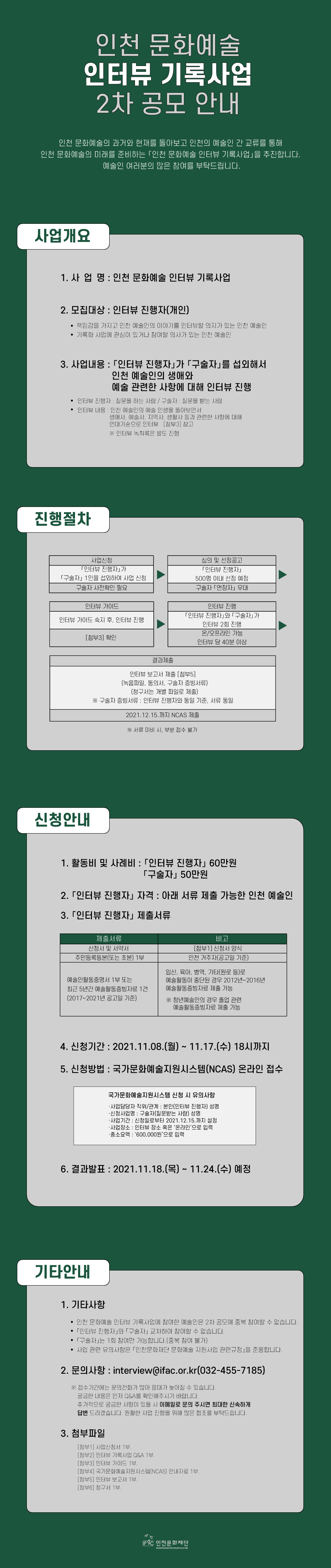 인천문화재단에서 '인천 문화예술 인터뷰 기록사업' 공모 진행 중입니다.